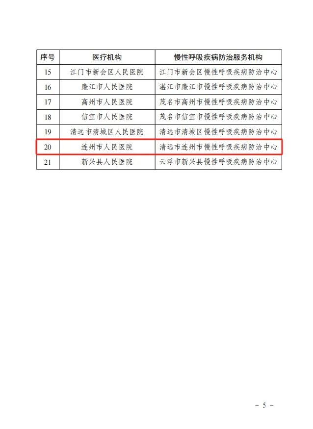 近日,广东省卫生健康委员会公布了广东省第二批市县(区)级慢性呼吸疾病防治中心名单,全省28家医疗机构上榜,其中市级医疗机构7家,县(区)级医疗机构21家。经过严格的评审和考核,连州市人民医院成功入选,标志着我院专科医疗技术和服务水平处于县域领先地位,将为慢性呼吸疾病患者带来更优质、更专业的医疗保障。