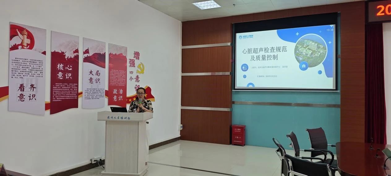 会议由连州市人民医院功能科主任高洪波主持。她介绍了本次超声质控会议的重要性,指出本次质控会议旨在优化超声检查的医疗质量,使之更加规范化和精细化,从而更好地服务临床,对提升各基层医疗单位超声诊疗水平意义重大。高洪波还讲授了《心脏超声检查规范与质量控制》,对心脏病例的超声检查的图像质量、报告书写规范性和诊断思路等方面进行了细致的分析和点评,从标准存图、超声专业术语、诊断意见书写等方面全面阐述了超声报告的规范化操作,查找图像储存和描述诊断中的不足,并提出了整改措施。