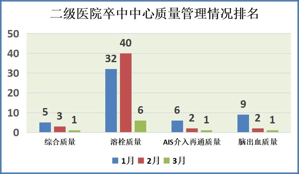 脑出血质量管理:1月第9名,2月第2名,3月即以显著优势摘得全省第1名,凸显出我院在出血性卒中救治中的规范化诊疗与快速反应能力。